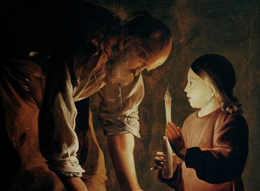 XIR182538 St. Joseph, the Carpenter (oil on canvas) by Tour, Georges de la (1593-1652); 120.5×80.8 cm; Musee des Beaux-Arts et d’Archeologie, Besancon, France; Giraudon; French, out of copyright